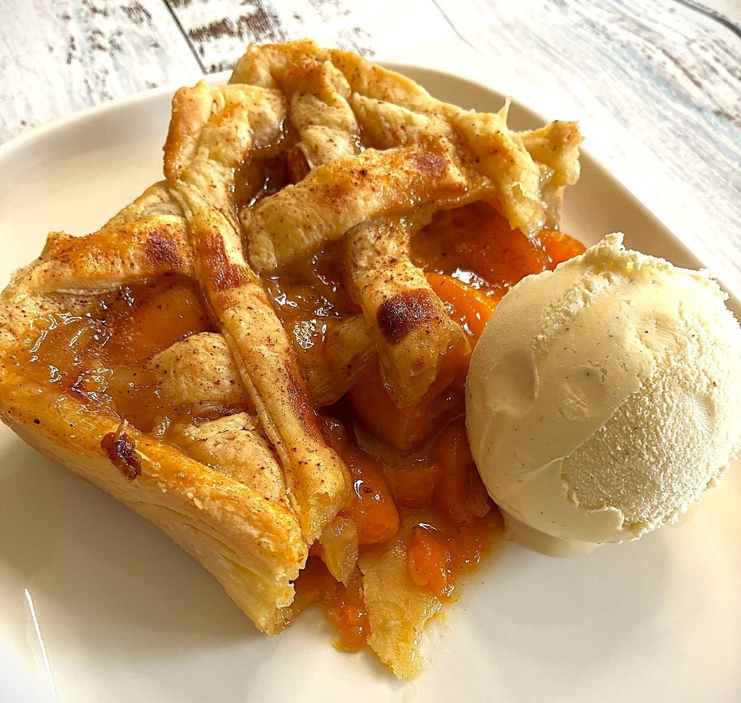 ''Het mooie van dit recept? Het is simpel, maar indrukwekkend. Je hoeft geen chef te zijn om iets spectaculairs op tafel te zetten. Met een paar blikken perziken, een goede roomboter en wat basisdeeg maak je een dessert waar je vrienden om gaan vragen. De korst is krokant en boterig, de vulling vol smaak, kruidig en fruitig – en dat allemaal uit eigen oven!''